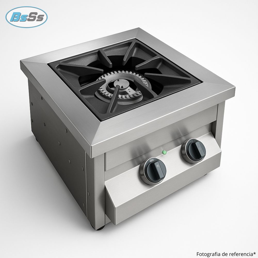 Estufa de cuatro puestos de mesa diseñada para cocinas industriales, comedores institucionales y producción gastronómica intensiva. Fabricada en acero inoxidable AISI 304, incorpora quemadores tipo corona de alto rendimiento que aseguran una cocción rápida y uniforme.