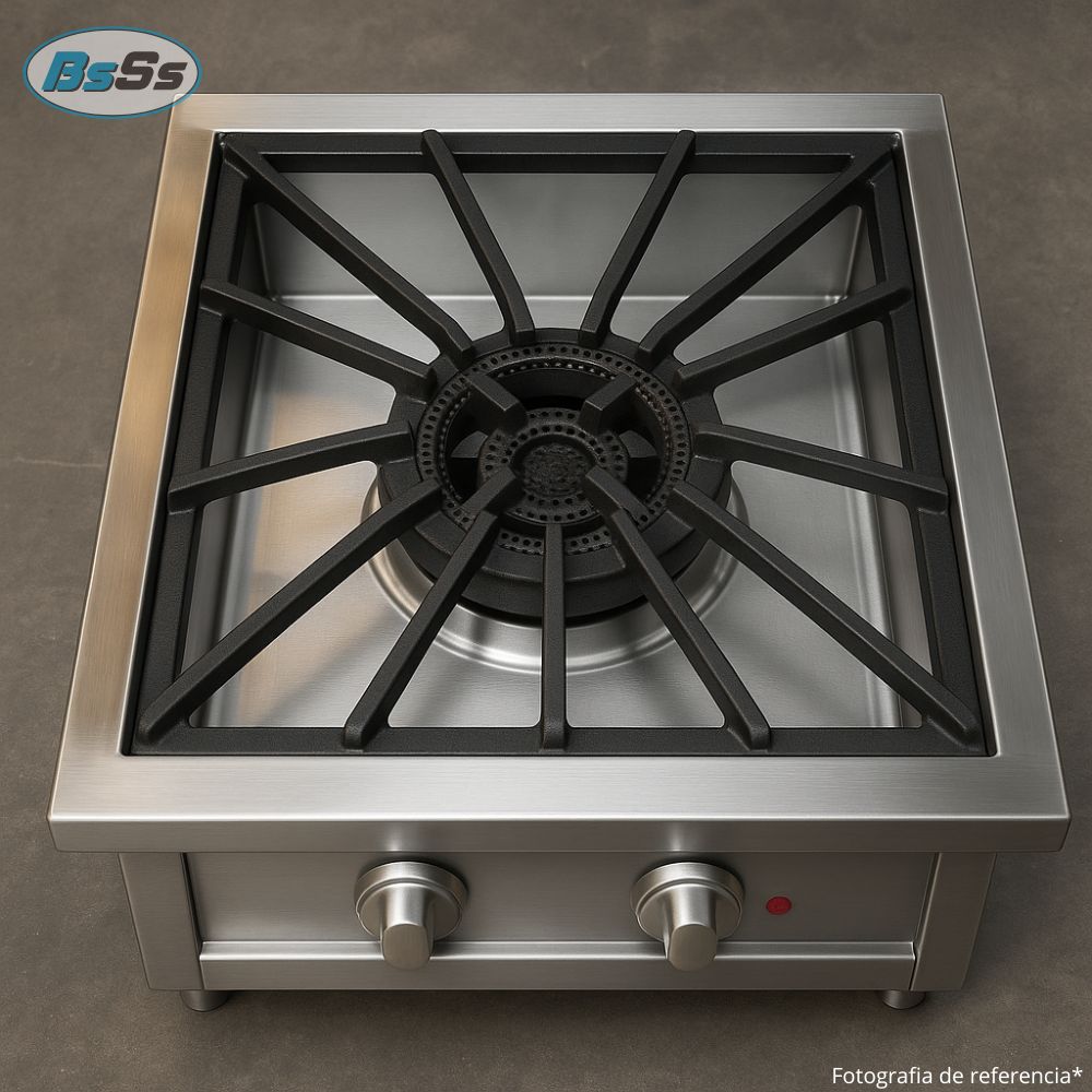 Equipada con quemador tipo corona de gran poder calórico, ofrece un rendimiento eficiente en espacios reducidos. Su estructura compacta permite instalarla sobre mesas o superficies de trabajo, manteniendo la seguridad y la potencia.