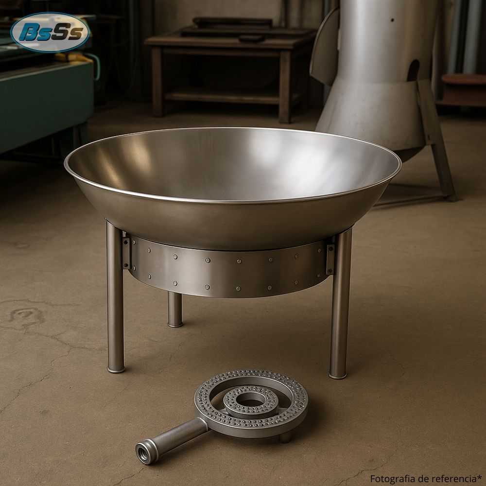 Paila de hilado a gas o vapor diseñada para procesos industriales o artesanales de queso hilado, como mozzarella o quesillo. Construida en acero inoxidable AISI 304, esta paila cuenta con doble camisa tipo baño María que permite un calentamiento uniforme y seguro.