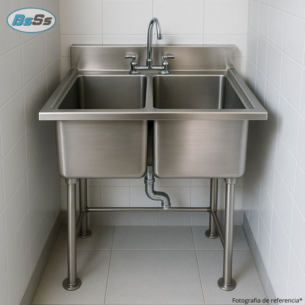 Pozuelo doble en acero inoxidable AISI 304, diseñado para facilitar las tareas de lavado y enjuague en cocinas profesionales. Con dos compartimientos amplios y funcionales, permite trabajar con mayor organización, higiene y eficiencia.